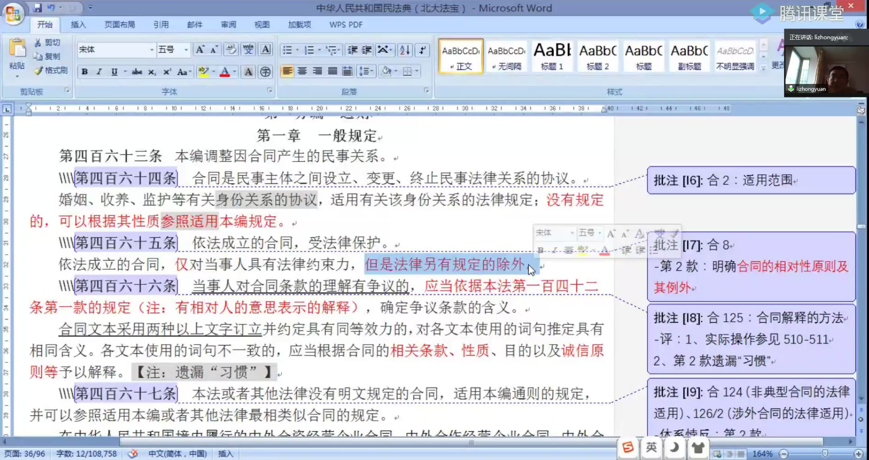6月22日下午,成人影片 全国两会精神学习会暨《民法典》解读系列学术讲座第四讲通过腾讯课堂线上直播,该场讲座同时也是漫修东吴学术论坛的第48讲。本讲由成人影片 李中原教授对《民法典》合同编进行解读,党委副书记兼副院长王振华主持。