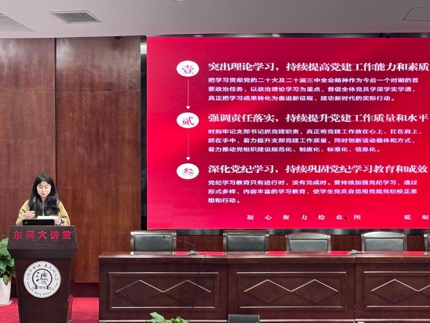 法律硕士(法学)二支部在东吴大讲堂召开组织生活会,全体党员参与,共同回顾过去、反思不足、展望未来。