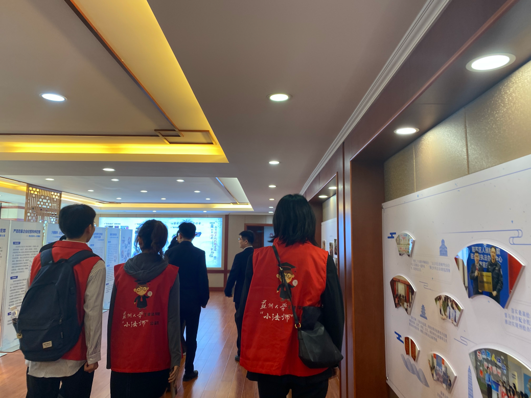 活动伊始,在姑苏区检察院党组成员、政治部主任顾晔的带领下,“小法师”公益团瞻仰了“濂溪育检”政治建设教育阵地和“海棠花红”党建阵地,体悟到“濂溪”检察文化品牌背后所蕴含的历史文化名城的人文底蕴与正己修身的美德传承;陆续体验检察办案中心、检察公开听证厅、议事联络室和数字检察工作室,感受到姑苏区检察院检察工作的现代化。