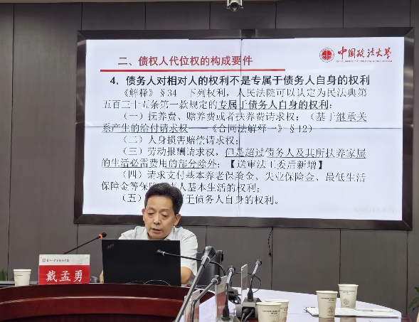 在接下来的第二讲中,戴孟勇教授以《债权人代位权的发展及争议》为题展开讲解,关于债权人代位权的客体问题,戴孟勇教授指出,《民法典》第535条的文义将其限制在债权及其有关的从权利,对“从权利”如何进行解释是一个问题,其引用了(2021)最高法民申7235号民事裁定书的裁定,该案驳回了代位权人请求债务人和相对人之间合同无效的诉讼请求,戴孟勇教授认为,代位权人不能提出合同无效的请求,但可以提出返还原物等请求。关于仲裁协议对法院主管代位权诉讼的管辖问题,他认为代位权人不受仲裁协议约束的理由主要在于约定的仲裁协议只具有相对性,并且当事人很容易倒签仲裁协议,如果仲裁协议能够约束代位权人,代位权人主张行使代位权将寸步难行。最终,《合同编通则司法解释》第36条采纳了折中的方案。但戴孟勇教授认为,该规定还是未能将劳动争议仲裁前置的情形考虑进去,仍有解释空间。关于代位权人行使代位权的效力问题,戴孟勇教授指出,代位权人可以直接受偿,但是这并不代表代位权人的债权具有优先性。第537条虽然在文义上没有限定为金钱债权,但实际上的意思应该是指代位权人和债务人之间、债务人和次债务人之间的债权都是金钱债权。