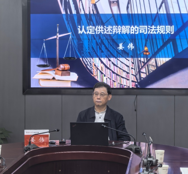 姜伟教授首先讲述“供述与辩解”并非单纯的刑诉法概念,而是在刑事一体化视角下贯通刑法与刑诉法的一组概念,其内容涵盖实体法和程序法的问题,具有权利属性、证据属性、功利属性、矛盾属性这四大属性。随后姜伟教授从冤假错案的教训切入,围绕六个方面展开,结合理论和实践,详细阐述了其对“认定供述辩解的司法规则”的思考。