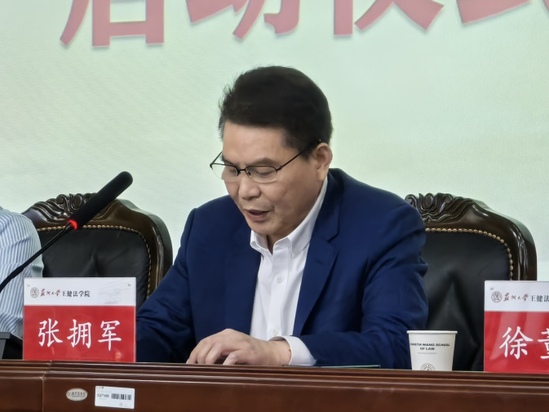 随后,北京市隆安(苏州)律师事务所张拥军主任致辞。张拥军主任对庄绪龙副教授和成人影片 党委书记、院长方新军表示感谢,希望充分利用这一平台加强理论与实践的结合,促进法学研究与法律服务的深度链接,在双方的共同努力下将其打造为法学教育和法律服务的典范。