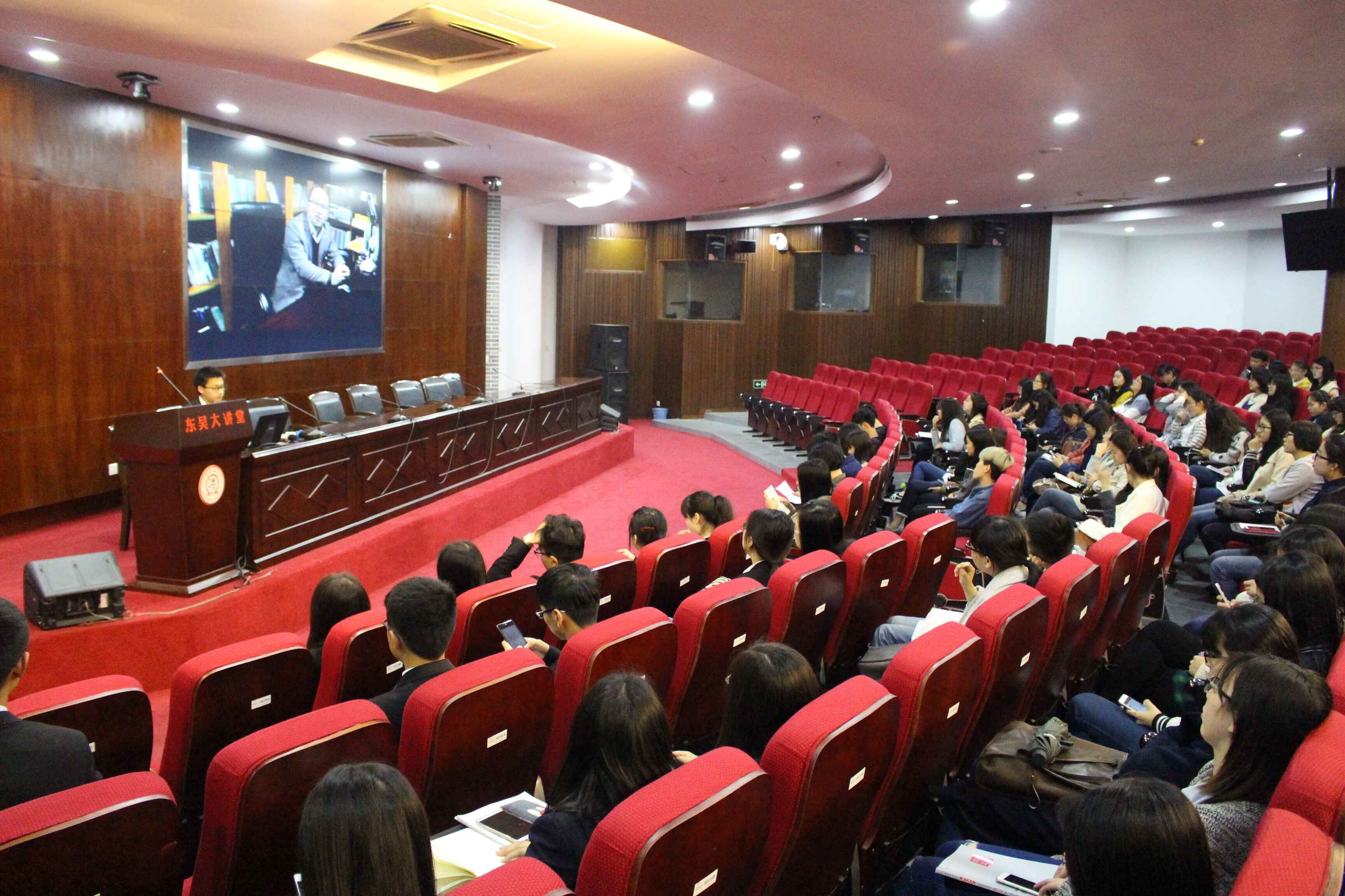 四月清和雨乍晴,今年的考研交流会便在这天朗气清的4月12日的19:00于东吴大讲堂举行。主持人王腾飞洋上场后首先祝贺学长学姐们取得了优异的成绩,随后感谢大三的学长学姐百忙之中可以参加本次考研交流会,还有想取经的大二大一同学,相信大家都能受益匪浅!