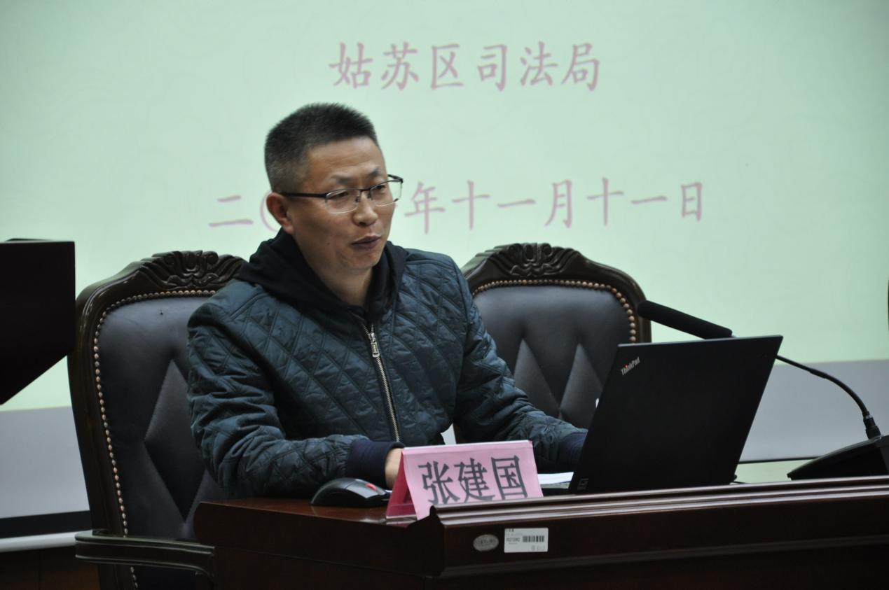 首先进行姑苏区司法行政宣传片放映,宣传姑苏区司法局在贯彻落实中央和省委、市委、区委关于法治建设决策部署中的具体措施,一系列普法活动、调节纠纷的日常工作和法律援助项目背后是姑苏区司法局为民服务的宗旨。