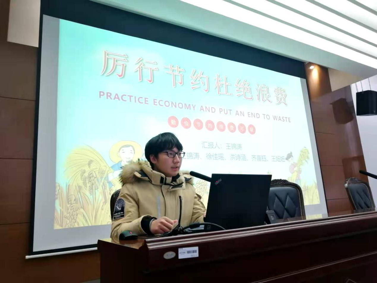 内浪费粮食的情况以及大学生对节约粮食问题的认识;第三组学员实地走访相城粮仓古迹,在学习历史中加深了对粮食安全的认识;其他组学员也进行了充分的调查和实践,并制作视频在会上进行展示。