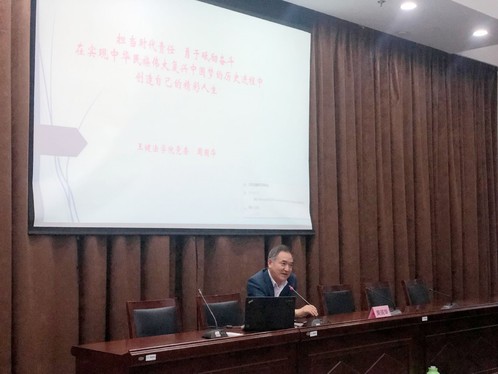开班典礼结束后,分党校校长周国华老师为学员们上第一堂党课《培育和践行社会主义核心价值观、做担当复兴大任的时代新人》。周书记集中重点阐述了两个问题。一是担当时代责任。他指出,担当精神彰显了中华民族传统文化的优秀基因,凸显了中国共产党人的政治品格,新的伟大斗争实践铸就了新时代担当精神:不仅是为了“实现中国梦的伟大奋斗”,更是为了“构建人类命运共同体,实现共享共赢”而不懈努力,责任担当是青年党员成长与进步的内在动力,需要在长期的文化熏陶中培植,更需要在生动的实践中磨砺;二是勇于砥砺奋斗,青年学生应当以一颗恒心永续奋斗,不驰于空想,不骛于虚声。坚守底色,不忘初心,坚定信仰,树立远大理想。把国家利益、民族命运、人民冷暖放在首位,与时代同步伐,与人民同呼吸,与国家共命运,更好地实现人生价值。