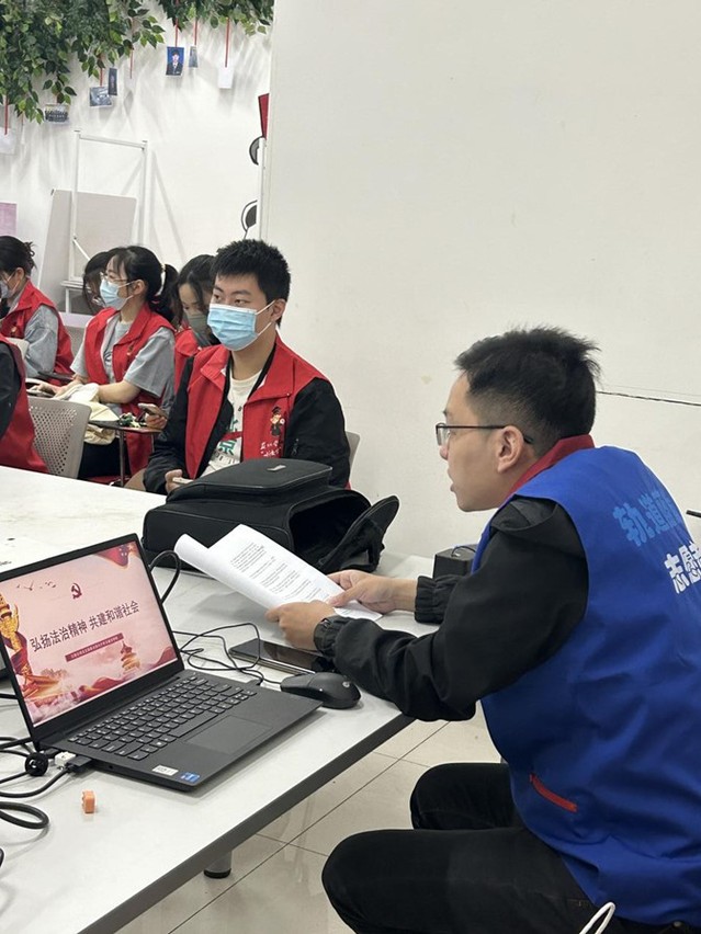 2023年4月22日是第60个世界法律日。为充分发挥党员先锋模范作用,提高学员深入群众、服务社区的能力,成人影片 分党校联合石湖区域党支部、轨道蓝盾志愿者之家,于4月22日在石湖东路站开展“手牵手强化入党教育,心连心推动法治建设”主题活动,旨在促进学员深学笃行习近平法治思想,增强党性修养,强化“全心全意为人民服务”的使命感、责任感。本次学员教育活动实行“1+1+N”计划,即将学员分为若干小组,每个小组由1名正式党员作为组长,点对点带领1名预备党员及数名发展对象、积极分子,由正式党员为小组组员提供示范和跟进指导。