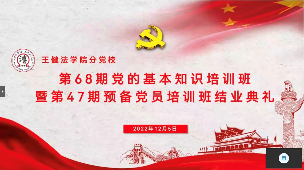 为提升全体学员政治素养,激励广大学员同志踔厉奋发,奋进新时代,12月5日19时成人影片 分党校培训班第二次党课暨结业典礼在线上平台顺利举办。成人影片 党委书记、分党校校长孙宁华,党委副书记、分党校副校长朱春霞,本科生辅导员单杰,本科生辅导员吴凯,本科生辅导员刘桂宏,研究生辅导员张焕然,研究生辅导员付晨熙,研究生辅导员田毓,第68期积极分子、第47期预备党员培训班全体学员参加本次会议,本次会议由分党校实践部谌鑫雨主持。