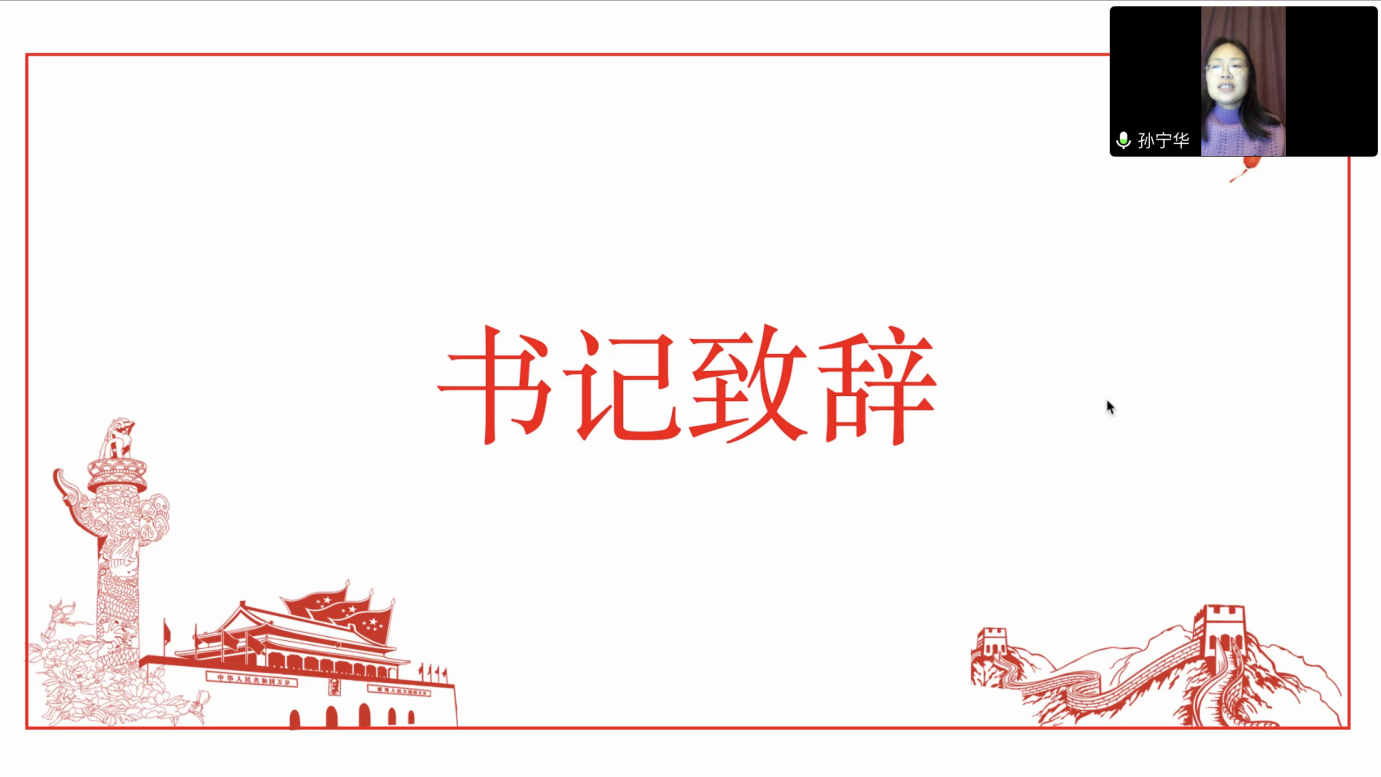 会议伊始,全体参会人员奏唱《国际歌》。紧接着,孙宁华书记致辞,对学员们提出期盼和要求,希望大家在疫情当下调适心情、努力学习的同时深入学习贯彻两会精神,在两个一百年交汇的关键历史节点助力民族复兴伟业。学员们应秉持坚定的理想信念,珍惜学员身份,提高对自己的要求和标准,按照党校的培训要求踏实完成各项学习任务,并且多关注时事新闻,勤加思考,以小见大,正确把握时代大势,将自己建设成为一个合格的党员。