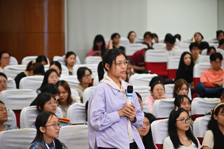 国际歌后,孙宁华书记进行致辞。时值学年伊始,她首先对法成人影片 全体分党校学员的到来表示热烈欢迎。随后她对学员提出了期望,即在学习上谨记“时人不识凌云木,直待凌云始道高”,见贤思齐,择善而从,优秀者和优秀者相聚,才会碰撞出思想的绚丽火花,优秀者和优秀者对话,才能催生出精神的高光时刻;在科研中牢记“细水长流淘尽砂,耐心方可匠心华”,勇于攀登,迎难而上,以自己之所学,促社会之公平,保持甘坐冷板凳的定力,胸怀批判精神,从日常生活出发,探索未知的领域;在思想上切记“愿得此身长报国,何须生入玉门关”,坚定信念,对党忠诚,紧紧团结在中国共产党的领导下,为实现中华民族的伟大复兴不懈奋斗。最后,她以习近平总书记在苏州考察的讲话作结,强调新时代青年人应当肩负起中华民族伟大复兴的使命任务,把握历史机遇,大显身手,勇攀高峰。