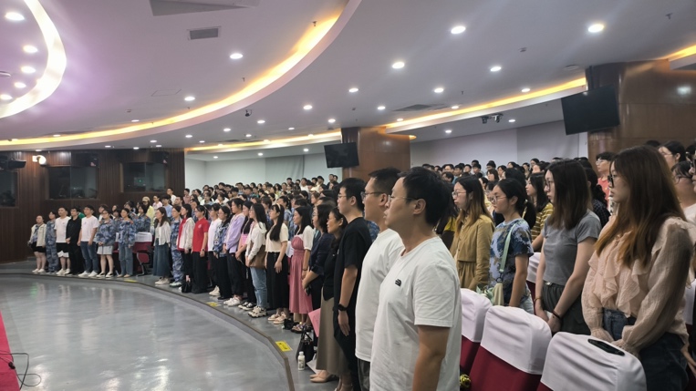 在激昂的国际歌声中,开班典礼揭开序幕。