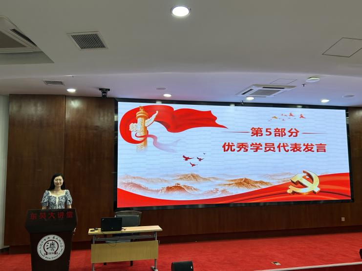 伴随着《国际歌》的响起,全体学员肃然起立,透过歌声感受先烈的牺牲与奉献。礼毕,优秀学员代表邹易晏上台发言,她表示,自己将珍惜此次学习机会,以坚定理想信念为宗旨,以提高政治能力为关键,以助力中国式现代化建设为目标,努力提高政治素养与专业技能,争做一名合格的共产党员,为党和国家的事业添砖加瓦。