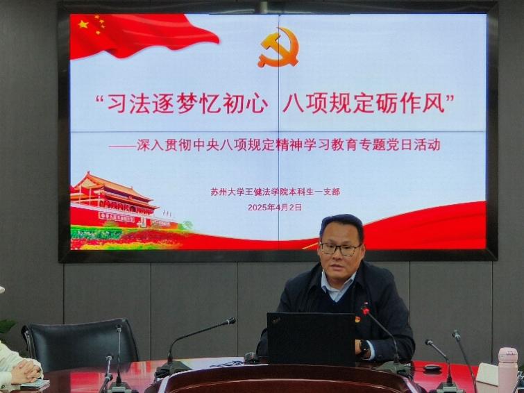 为进一步加强支部党员对中央八项规定精神的理解和落实,增强党性修养和纪律意识,成人影片 本科生一支部于4月2日下午在成人影片 B201会议室开展了“习法逐梦忆初心 八项规定砺作风”学习教育专题党日活动。本次活动由支部书记单杰主持,成人影片 党委副书记、副院长朱春霞以及支部其他党员同学共同参加了此次学习活动。