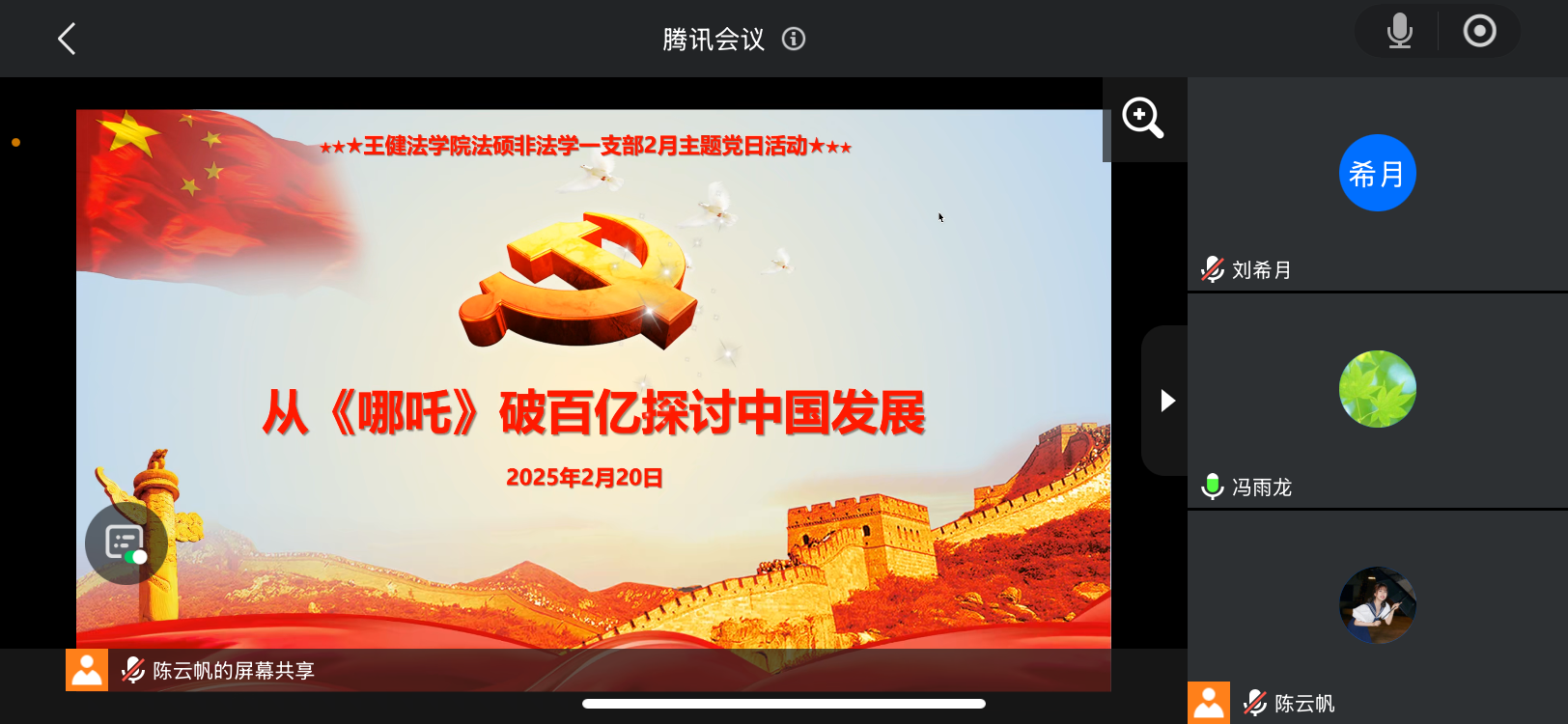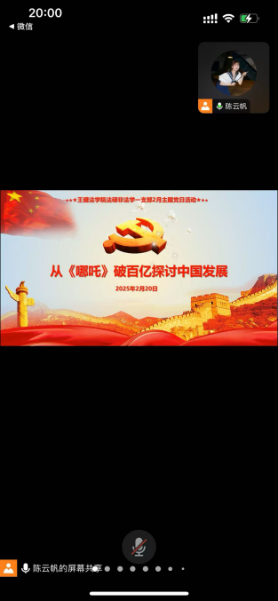 法硕非法学一支部组织开展了以“从《哪吒》票房破百亿探讨中国发展”为主题的党日活动。