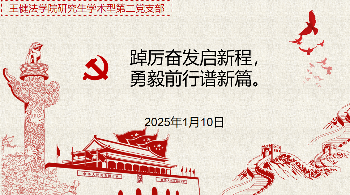研究生学硕第二党支部开展以“踔厉奋发启新程 勇毅前行谱新篇”为主题的党日活动,党支部组织全体党员集体学习习近平总书记二〇二五年新年贺词精神,感受祖国踏浪前行的奋进力量,凝聚起冲锋决胜的发展信心,并组织党员深入学习2024年中央经济工作会议精神,引导党员全面看待我国经济社会发展取得的进展成效,准确把握我国经济发展面临的形势和趋势,深刻领会新时代做好经济工作的规律性认识,有力有效推动党中央决策部署落实落地。