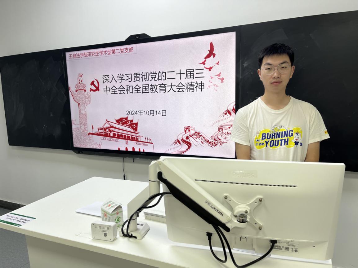 研究生学硕第二党支部以“深入学习贯彻党的二十届三中全会和全国教育大会精神”为主题,于2024年10月14日开展党日活动。