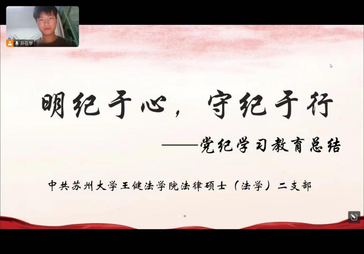 法律硕士(法学)二支部以“明纪于心,守纪于行”为主题通过线上腾讯会议的方式开展党纪学习教育,全体党员参加。