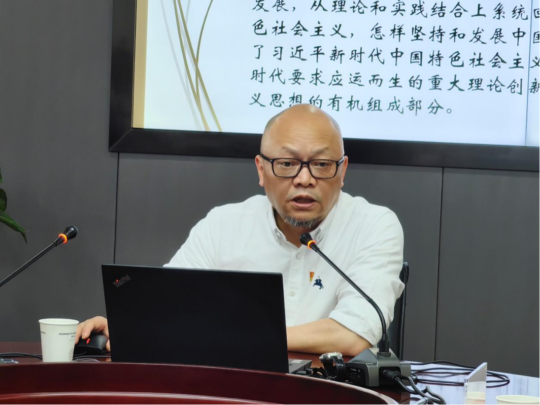 在师生党员“同上一堂纪律党课”环节中,方新军以“习近平法治思想的理论意义和实践意义”为主题,深入浅出的阐释了习近平法治思想形成发展的时代背景、核心要义等,结合案例生动讲解了习近平法治思想中的“十一个坚持”。他勉励党员们要从学思践悟四个维度深入学习习近平法治思想,不断提高自身党性修养、法治思维能力,争做挺膺担当的时代新人。周婷结合典型案例,对《中国共产党纪律处分条例》的修订背景、主旨要义、内容解读等方面进行了深入细致地解读。