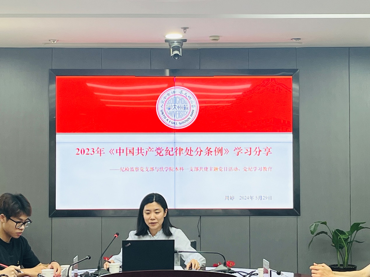 为深入推动党纪学习教育走深走实,2024年5月29日下午,校纪检监察党支部、成人影片 本科一支部、研究生学术二支部联合开展主题党日活动。校纪委委员、成人影片 院长方新军,成人影片 党委副书记副院长朱春霞,校纪委案件审理处处长兼纪委办公室副主任戴璇颖,纪检监察党支部副书记、校纪委副处职纪检员袁洁,两个学生党支部的全体党员同学们共同参加了本次活动。活动由第四批“全国党建工作样板支部”培育创建单位、成人影片 本科生一支部书记单杰主持。