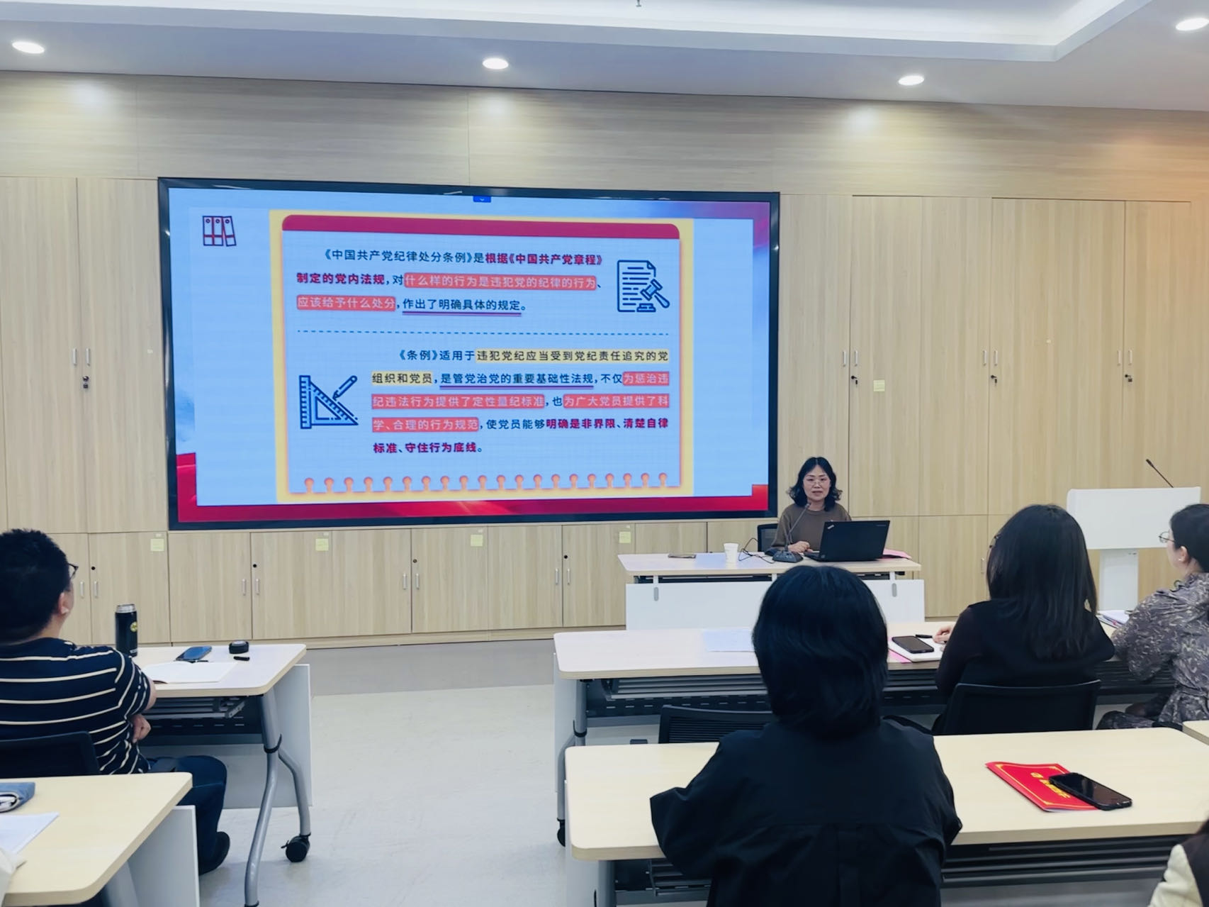 会议中,孙宁华还作了党纪学习教育专题党课。她针对《中国共产党纪律处分条例》进行了详细解读,尤其强调了政治纪律的重要性。她指出,严明的政治纪律是保持党的先进性和纯洁性的根本保障,要求全体党员务必自觉遵守,时刻保持清醒的政治头脑和坚定的政治立场。