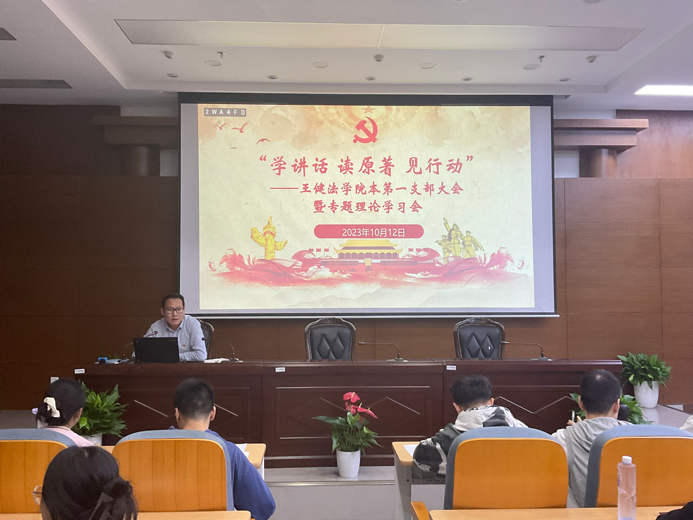 为深入学习贯彻党的二十大精神,进一步统一思想、深化认识,做好新形势下党员发展工作,成人影片 本科生第一学生党支部于2023年10月12日在法成人影片 西庭召开支部大会暨专题理论学习会。