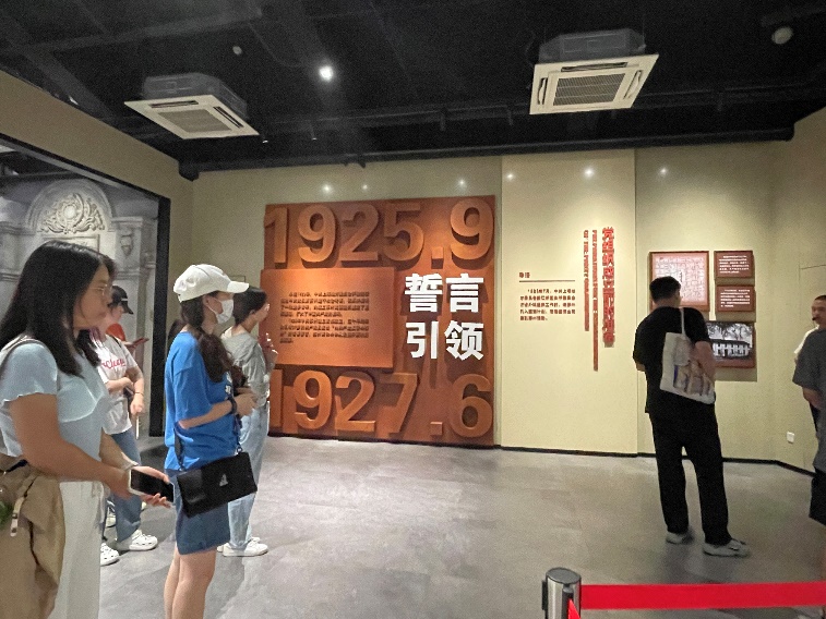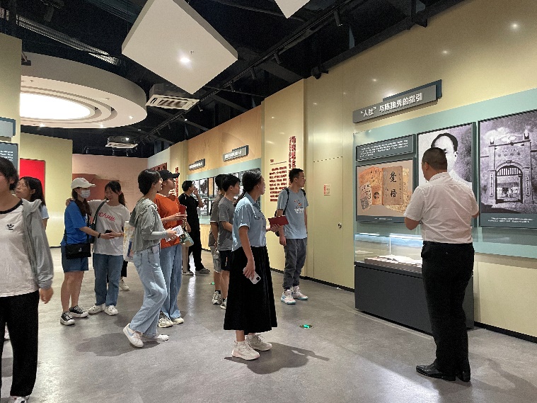 在讲解员的带领下,党员、团员参观中共苏州独立支部史迹陈列展,透过一件件实物、一幅幅图片、一段段影像,仔细聆听回顾党组织在苏州的建立经过、奋斗历程。
