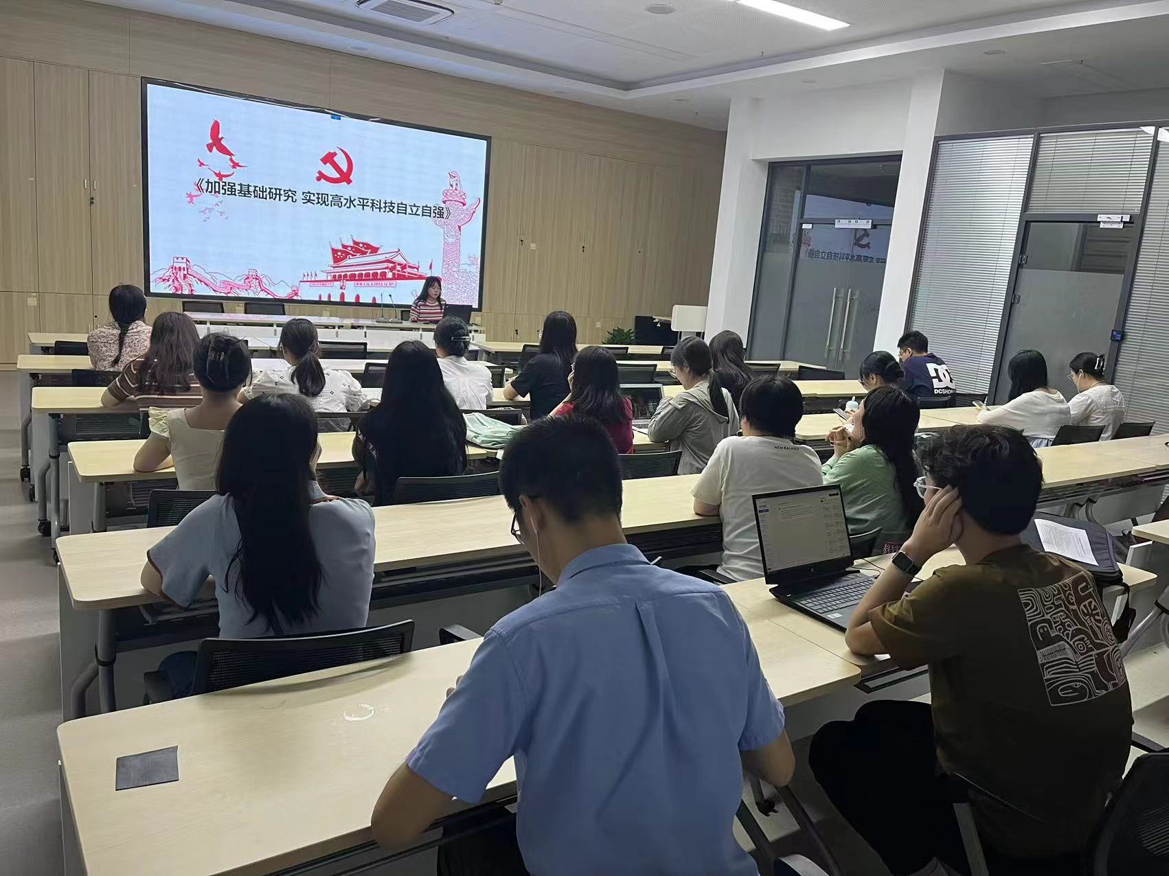 2023年9月19日,成人影片 研究生学硕第二党支部以“感悟时代伟力,筑梦科技强国”为主题,学习和领悟习近平总书记的重要文章《加强基础研究 实现高水平科技自立自强》,并结合时事热点“华为Mate 60”这一话题,感悟时代的伟力,学习和发扬科技自强的精神。