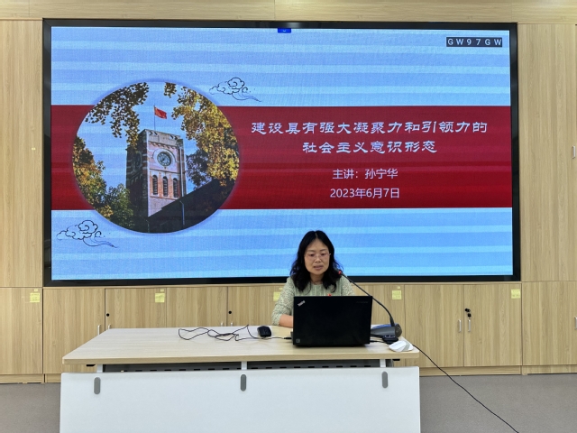 接着,孙宁华以“建设具有强大凝聚力和引领力的社会主义意识形态”为题,作意识形态教育讲座。讲座既有理论知识,又有案例分析,内容丰富,见解深刻,案例鲜活。她强调:思想舆论阵地要牢牢掌握在自己手中;要巩固壮大奋进新时代的主流思想舆论;要健全网络综合治理体系,推动形成良好网络生态;要坚持马克思主义在意识形态领域指导地位,建设具有强大凝聚力和引领力的社会主义意识形态。