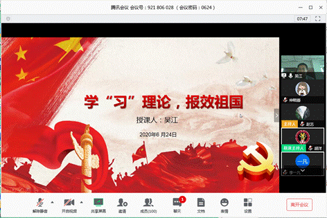 6月24日下午,成人影片 党委、分党校在线上举行了2020届毕业生党员“珍视党员身份,增强党性意识”教育活动。院党委书记吴江,党委副书记、副院长王振华和2020届本科生和研究生毕业班党员参加了本次活动,学工办主任、分党校秘书长胡洋主持。