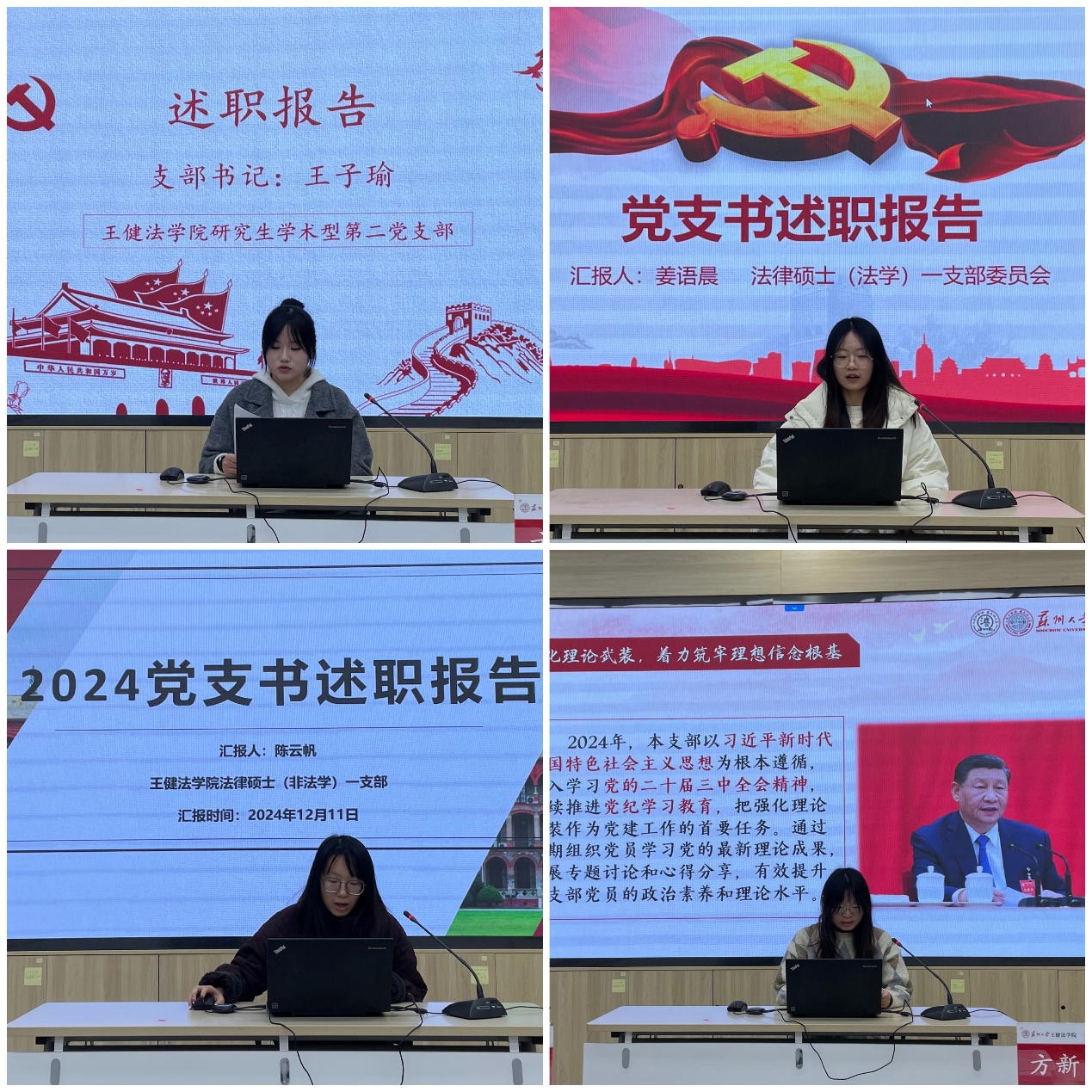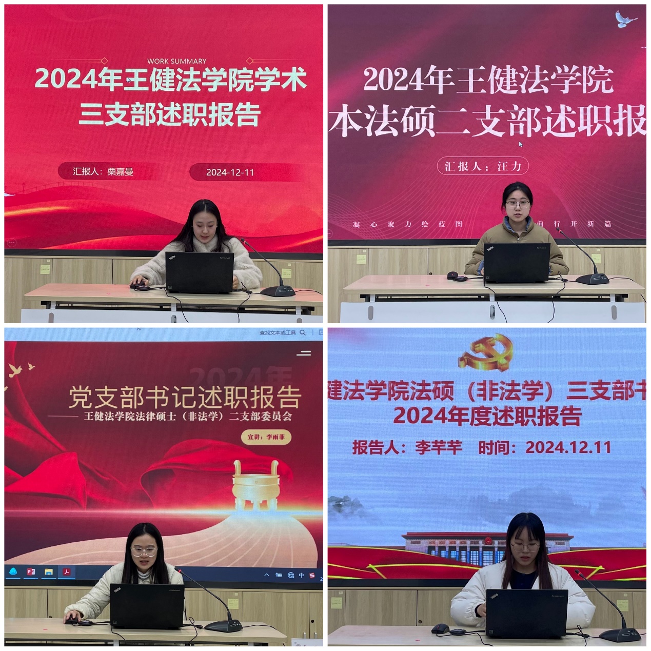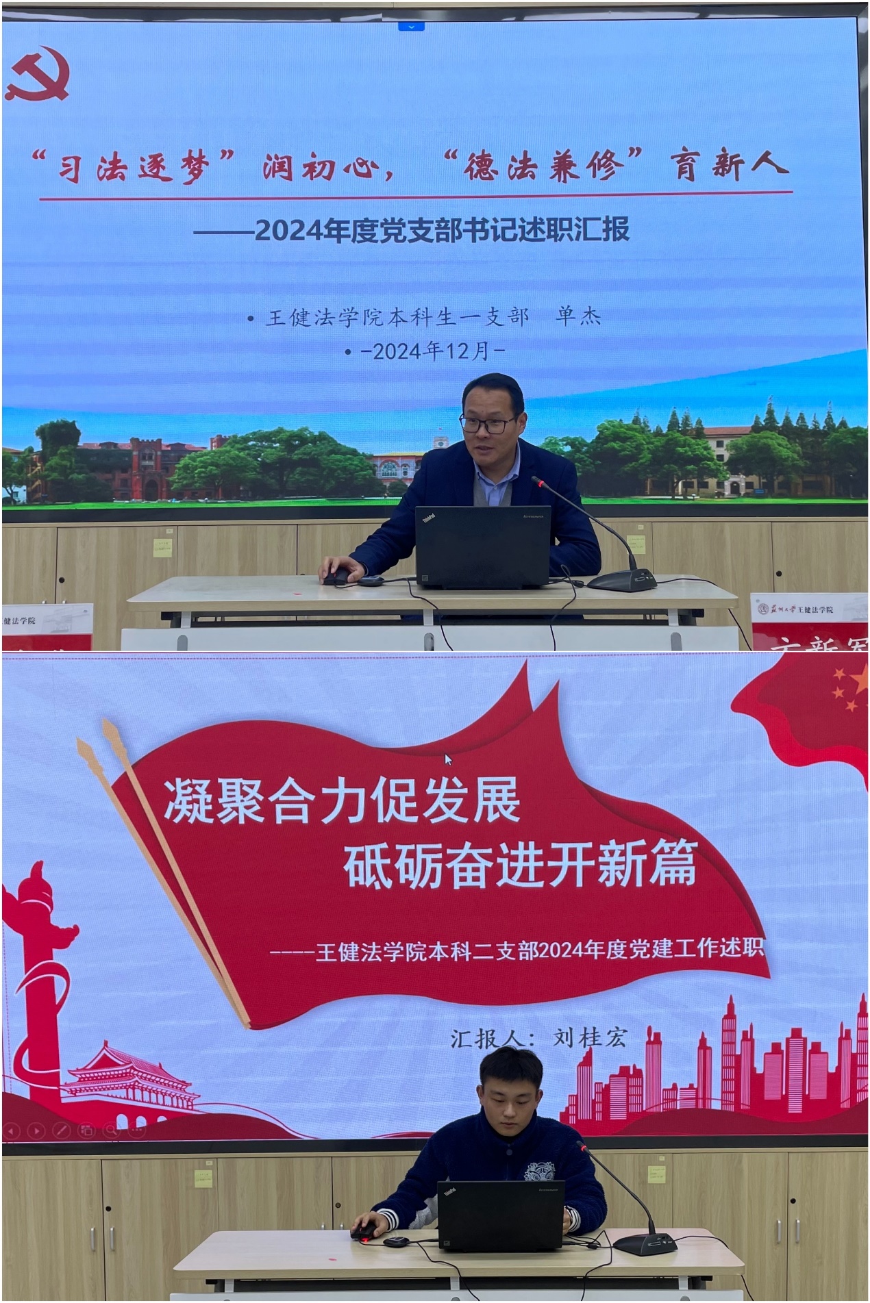 本一支部书记单杰老师做重点述职。本一支部既是成人影片 样板支部本一支部,也成功入选第四批“全国党建工作样板支部”培育创建单位。本一支部重点介绍了“卓越法治人才”培养的“一三五”党建工作法,即:一个党建育人品牌、三大党建育人宗旨、五彩党建育人行动。