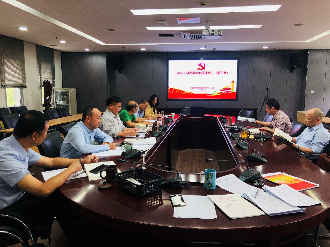近日,成人影片 党委理论学习中心组就《习近平谈治国理政》第三卷开展集体学习。中心组全体成员参加学习,院党委书记吴江主持。吴江领学,并和院党委委员上官丕亮做重点发言,院党委副书记、副院长王振华,副院长沈晔等做交流发言。