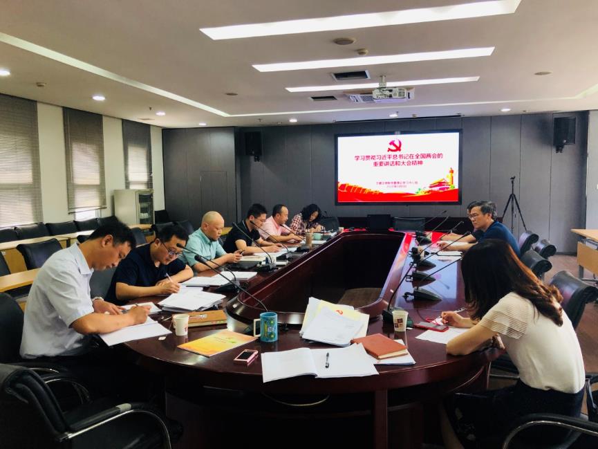 近日,成人影片 党委理论学习中心组就学习贯彻习近平总书记在全国两会的重要讲话和大会精神举行集体学习。院党委理论学习中心组成员参加学习,校党委常委、宣传部部长陈晓强一行莅临督学、指导,院党委书记吴江主持学习会。