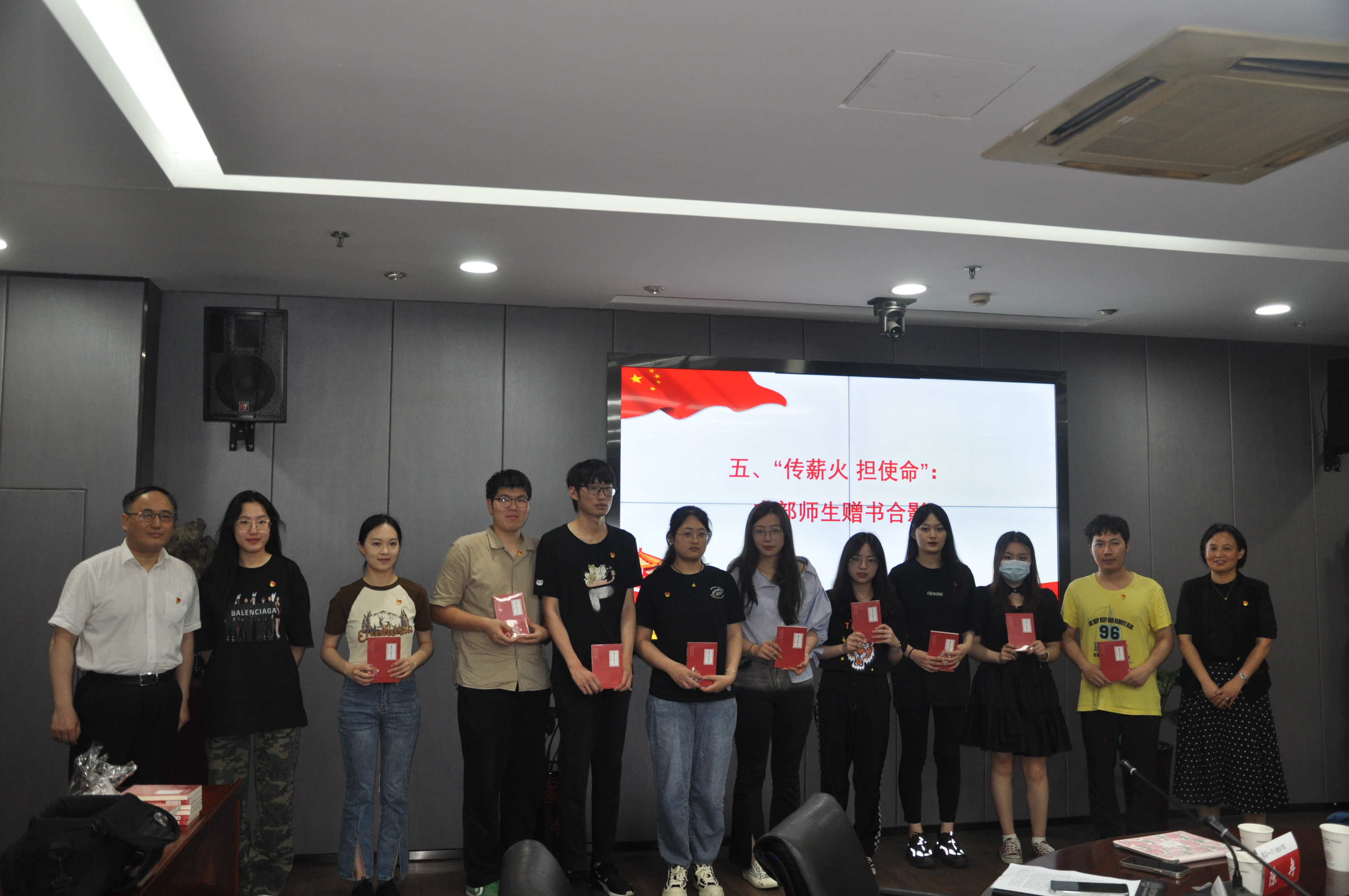 关爱在慰问中传递,希望在话语中流淌。活动的最后,纪检监察支部师生与成人影片 本科一支部党员代表进行赠书仪式并合影留念。宫向阳书记勉励各位党员同志再接再厉、自立自强,不断拓展和巩固读书实际成效,充分发挥党员先锋引领作用。