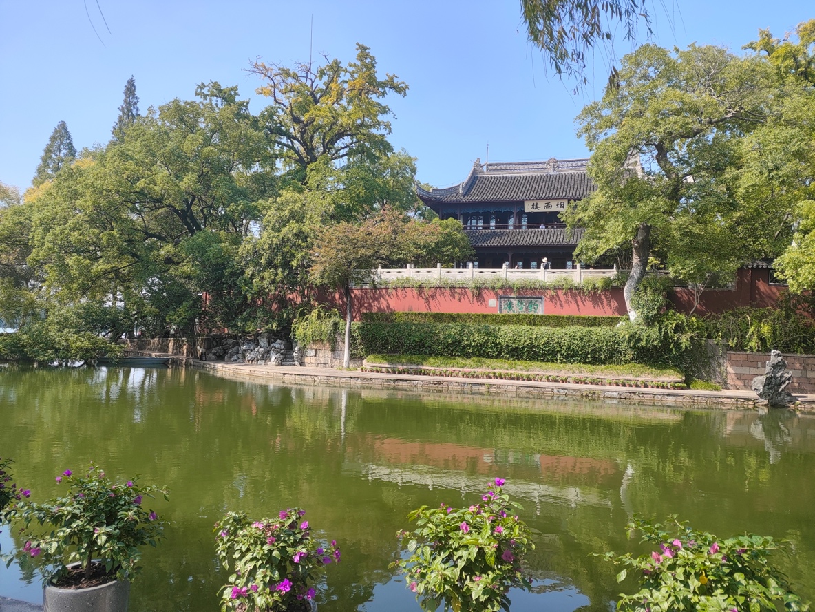 “烟雨楼台革命萌生,此间曾著星星火。”瞻仰红船后,支部老党员们沿着湖岸来到烟雨楼前。“台筑鸳湖之畔,以馆宾客。”烟雨楼前檐悬着由董必武所书“烟雨楼”匾额,明窗朱柱,重檐画栋,在绿树掩映下,更显雄伟。从一叶红船到巍巍巨轮,烟雨楼成为了光荣的革命纪念地,见证了中国共产党带领中国人民推进中华民族从站起来、富起来到强起来的伟大飞跃,也见证了中国共产党从数十人逐渐发展成为拥有数千万党员的世界上最大的马克思主义执政党的光辉历程。