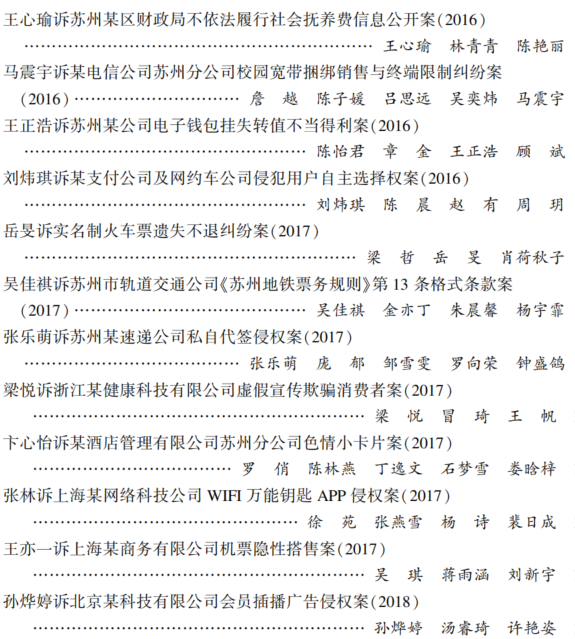 上海小城律师事务所在华东政法大学举办了“小城杯”公益之星创意诉讼大赛的全国赛道,该项目与苏大的项目具有同质性。2021年第七届大赛的项目选题、诉讼过程、诉讼结果展示参见如下视频(//live.0576yun.cn/live/tvchat-175356924?jumpitd=1&shauid=DxCJJ8rN75eNC5iVxK1fJw**&fr=&sharetstamp=1636590413951&signupskip=0)。