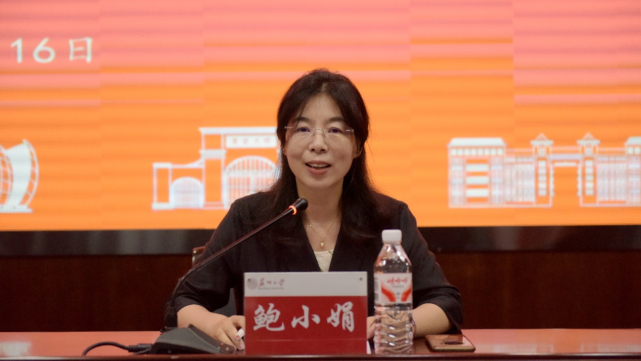 首先,鲍小娟致欢迎词,她表示成人影片 将充分发挥学科与平台优势,确保本次培训取得实效,并希望通过培训加强政、校、企联动,促进区域知识产权服务链与产业链深度融合。