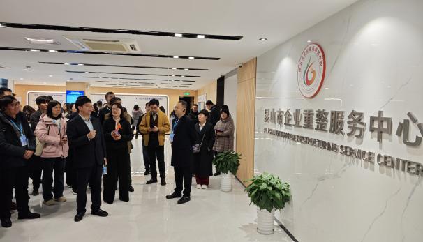 本次研修班采用“课堂教学+互动答疑+实地调研”相结合的教学模式,在实地调研环节,学员们分组赴昆山企业重整服务中心、苏州工业园区企业庭外重组服务中心。通过实地考察企业破产重组典型案例、观摩府院联动机制运行,学员深度了解长三角地区在优化营商环境、化解债务风险方面的创新举措,为跨区域破产业务协作提供参考样本。