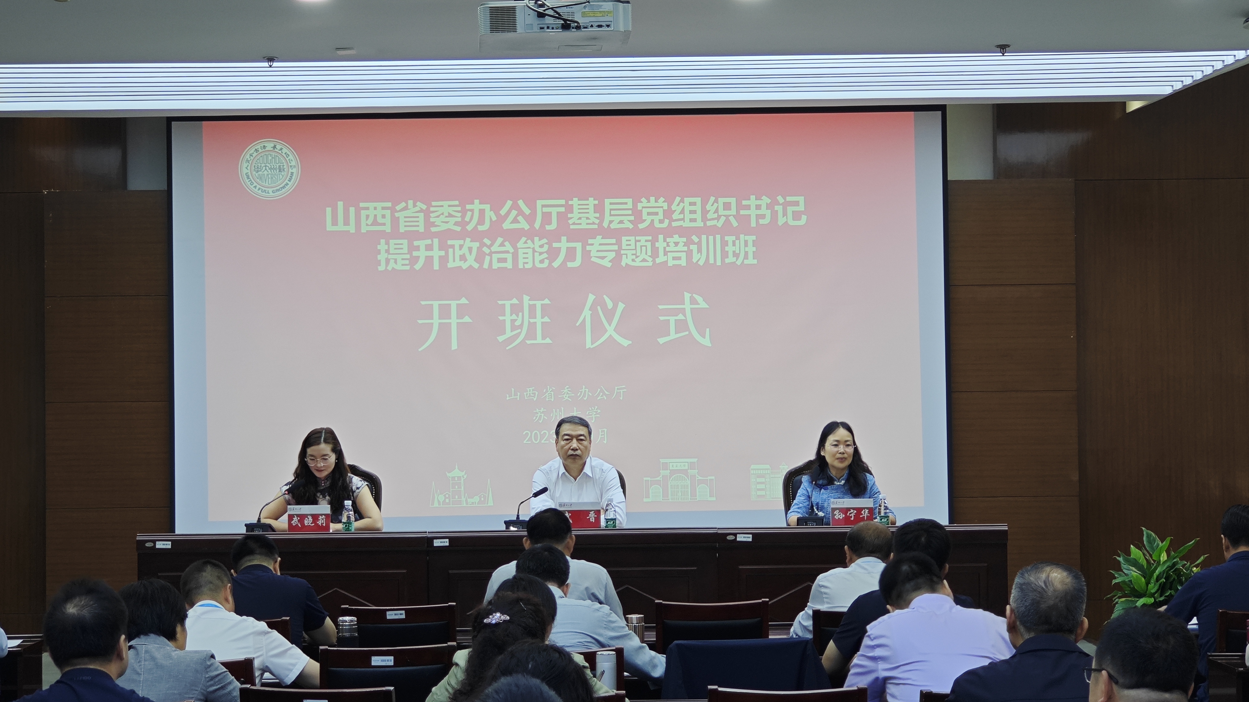 10月19日上午,山西省委办公厅基层党组织书记提升政治能力专题培训班在成人影片 顺利开班。来自山西省委办公厅的51位党务干部参加本次培训并参加了开班仪式。参加开班仪式的领导有主持日常工作的省委副秘书长武晋同志、苏州成人影片 党委书记孙宁华同志。开班仪式由成人影片 对外联络与发展办公室主任武晓莉同志主持。