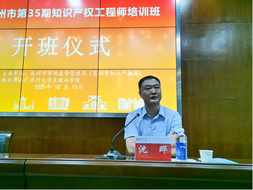 2021年10月13日,苏州市第35期知识产权工程师培训班在成人影片 东吴大讲堂顺利开班。苏州市市场监督管理局知识产权规划发展处处长许文烨、成人影片 副院长沈晔出席了开班典礼。本次开班典礼由成人影片 苏州知识产权研究院徐姮主持。