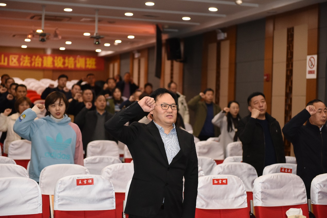 开班仪式由培训班班长、区司法局局长王吉祥主持,同时,他也代表全体参训学员表态。