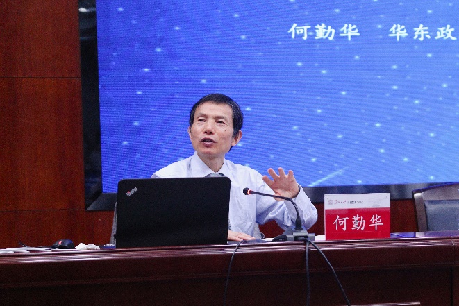 何勤华老师为北京大学法学学士、法学博士,华东政法大学法学硕士。原华东政法大成人影片 长,现为华东政法大学法律文明史研究院院长、全国外国法制史研究会会长、中华司法研究会副会长,上海市文史馆馆员。出版《西方法学史》、《中国法学史》(三卷本)、《法律文明的起源》等120余部专著与合著,在法学类核心刊物上发表论文200余篇。曾两次留学日本东京大学,享受国务院专家特殊津贴。获“中国十大杰出中青年法学家”、 “国家百千万工程人才”、“全国优秀留学回国人员”、“国家级教学名师”等称号。本次讲座由成人影片 党委书记、院长、教授方新军老师主持,何勤华老师主讲,蔡晓荣老师、卢然老师、栾兆星老师参与会谈。