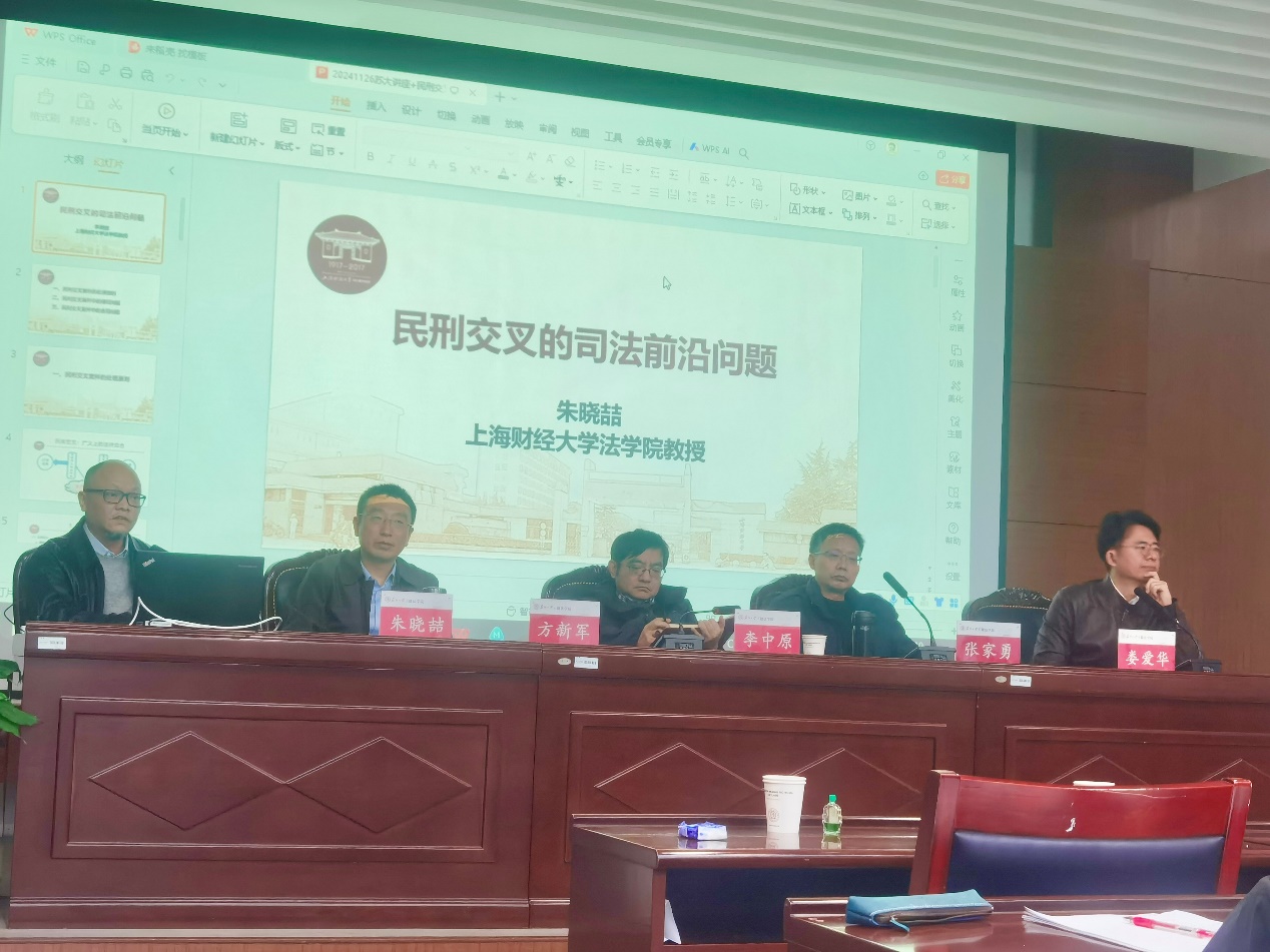2024年11月26日,一场聚焦民刑交叉司法前沿问题的讲座在成人影片 中式模拟法庭成功举办。本次讲座由上海财经大学法成人影片 教授、博士生导师朱晓喆主讲,成人影片 教授、博士生导师李中原担任主持人,成人影片 党委书记、院长、教授、博士生导师方新军,教授、博士生导师张家勇,副教授娄爱华、庄绪龙作为与谈人参与了讨论。