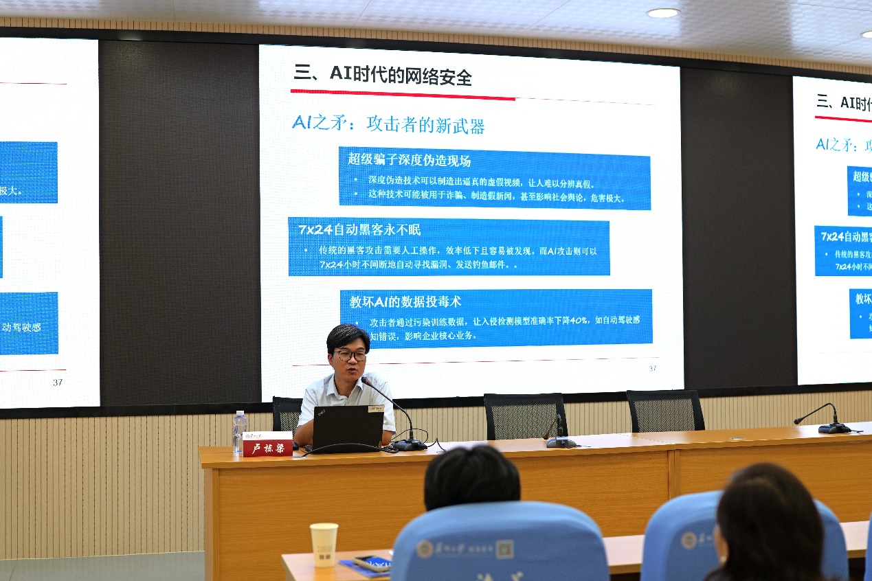 为了让新生更好地适应校园生活,在开学典礼举办前,成人影片 已组织全体新生参加了安全教育讲座。讲座特邀苏州移动公司网络安全及互联网运维工程师、云业务负责人卢栋梁先生担任主讲,为现场师生带来了一堂生动而深刻的网络安全科普课。新生们认真记录笔记,部分同学还主动提问,进一步提升了安全意识,为接下来的校园生活做好了充分准备。
