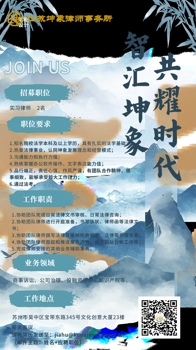 江苏坤象律师事务所招聘实习律师