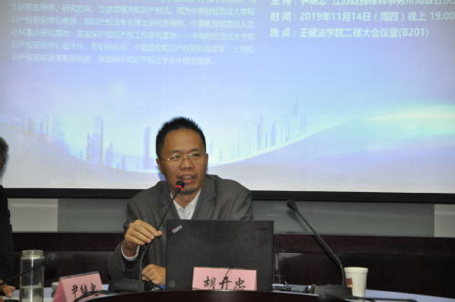 本讲嘉宾是教育部高校人文社科重点研究基地、国家保护知识产权工作研究基地—“中南财经政法大学知识产权研究中心”副主任、专职研究员、中南财经政法大学法成人影片 教授、博士生导师胡开忠;本讲主题是“网络环境下广播组织权保护研究”;本讲主持是江苏政纬律师事务所高级合伙人尹继忠先生。