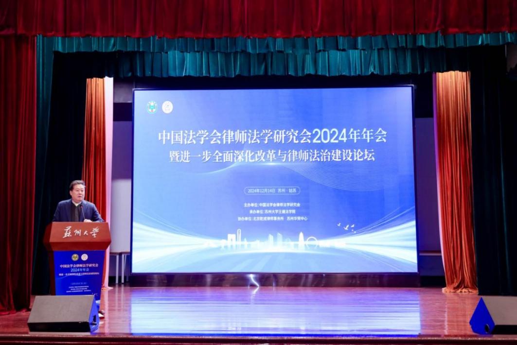 12 月 14 日,中国法学会律师法学研究会2024年年会暨进一步全面深化改革与律师法治建设论坛在苏州召开。本次会议的会议主题为“进一步全面深化改革与律师法治建设”,会议具体围绕以下三个议题展开讨论:“深化律师制度改革”“律师与健全公正执法司法体制机制”“加强涉外法治建设,建设国际一流律师事务所”。