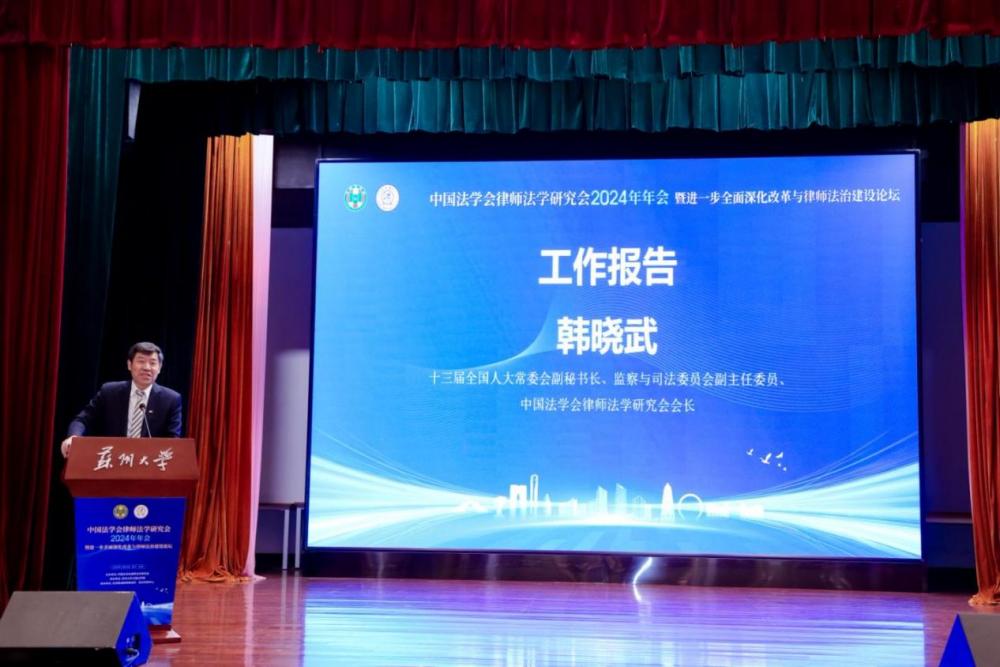 韩晓武会长作中国法学会律师法学研究会2024年工作报告