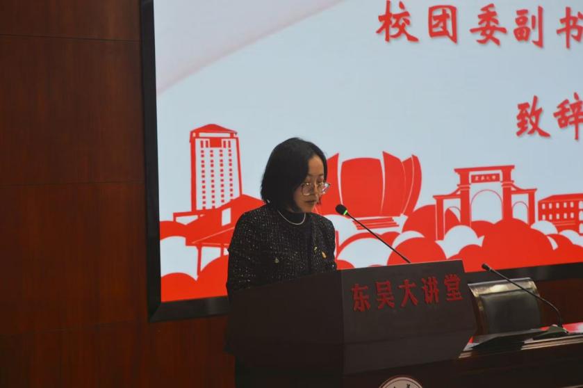2024年12月11日下午,共青团成人影片 第二十次代表大会在成人影片 东吴大讲堂顺利召开。成人影片 团委副书记徐娜,成人影片 党委副书记朱春霞,成人影片 团委副书记付晨熙,成人影片 本科生辅导员吴凯,经济法讲师方翔出席大会。