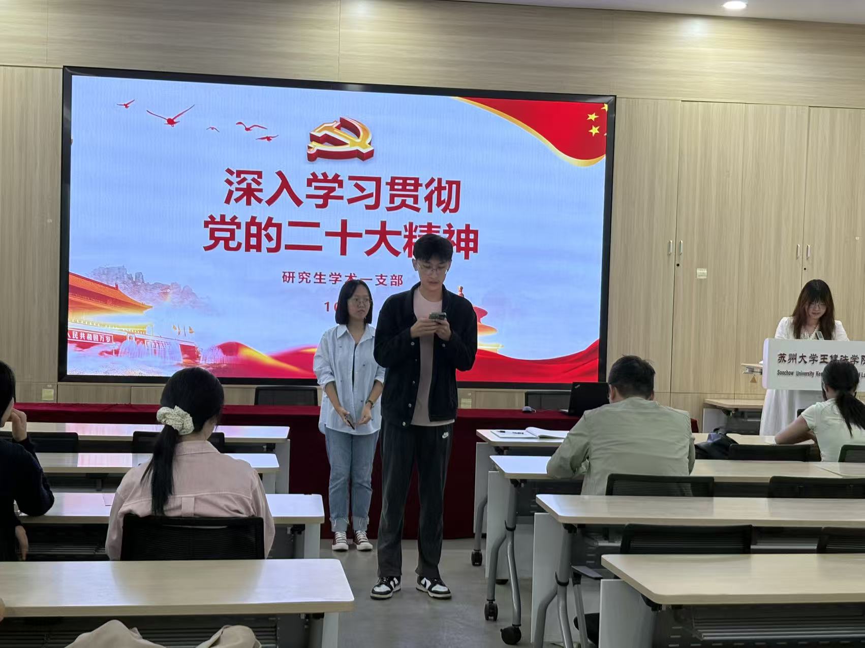 为深入学习贯彻党的二十大精神,切实提升支部党员的理论素养和政治觉悟,成人影片 学术型研究生一支部于10月13日组织开展了以“深入学习贯彻党的二十大精神”专题学习会暨预备党员接收仪式。活动通过观看理论讲座视频、分享学习体会和举行入党宣誓仪式等形式,为全体党员上了一堂深刻而丰富的理论学习和党性教育课。