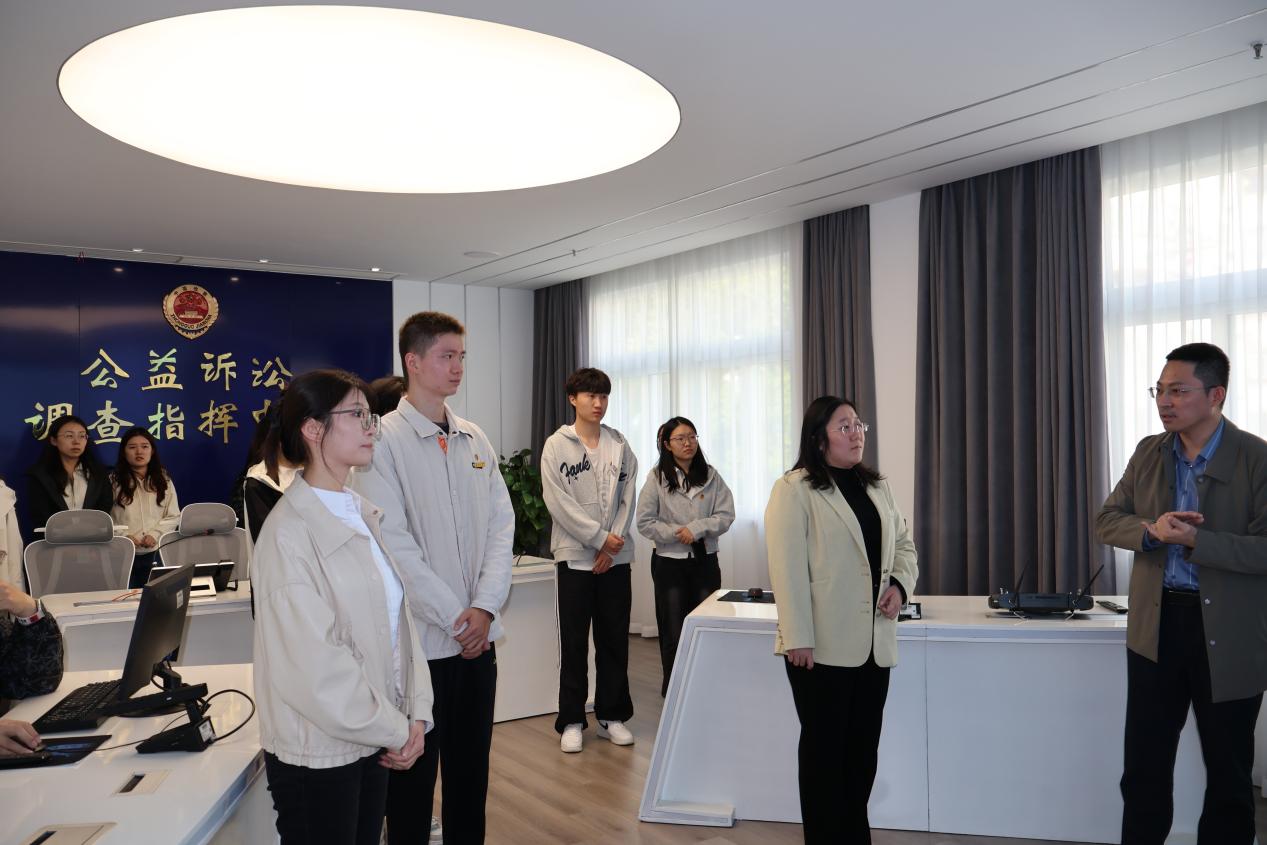 活动伊始,在检察院工作人员的引导下,师生们先后参观了检察办案中心、检察公开听证室、“濂溪育检”政治建设教育阵地,详细了解了检察院的组织架构与工作运转模式。其中,重点观摩了 “公益诉讼护名城” 生态检察品牌相关设施,让师生们直观感受到科技赋能司法保护的创新实践。此外,师生们进一步了解了破产检察及破产法研究中心的相关工作,对检察业务的多元维度有了全面认知。